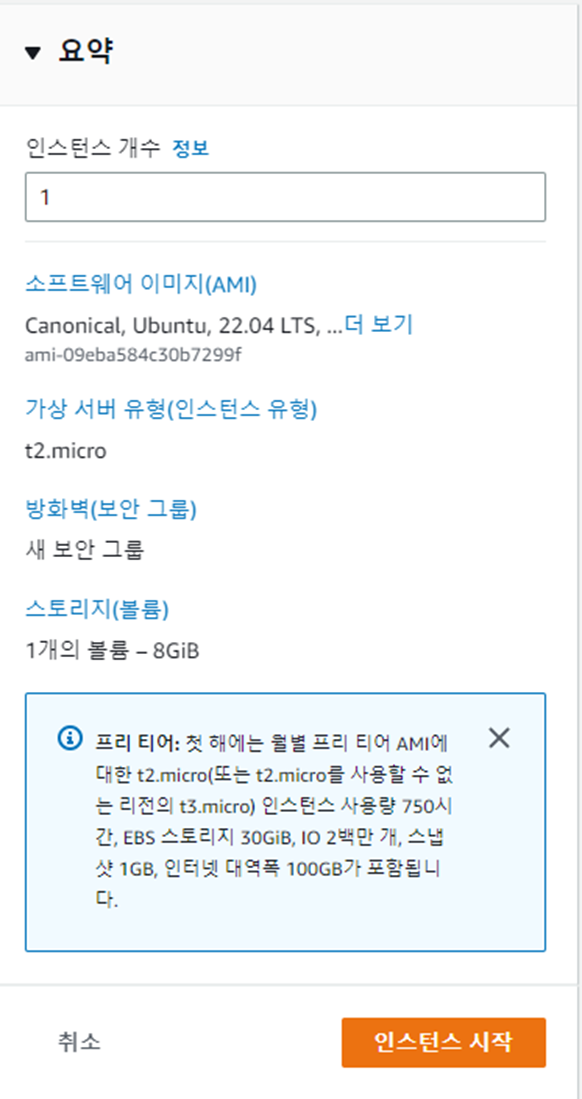 - 스토리지는 최대로 설정 가능한 30기가로!